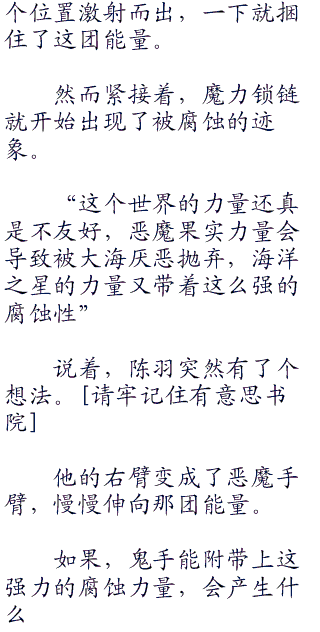 这回,陈羽用来封锁海洋之星力量的,是流动的魔力,不会被腐蚀掉,更不会被冲破。