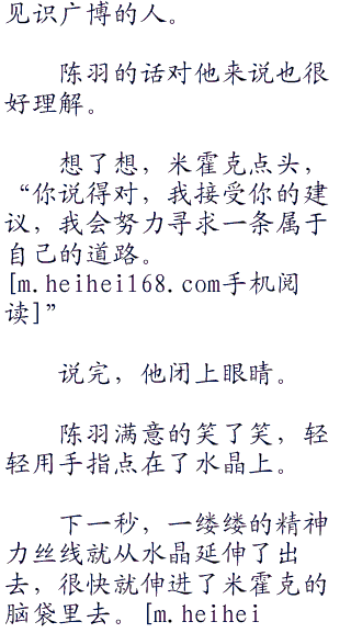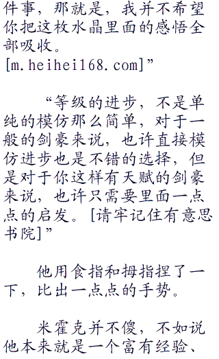 “米霍克,这枚水晶里面,记录了一位大剑豪的心得,我相信,以你的领悟力,获得了这枚水晶一定能顺利晋级大剑豪。”他晃悠着水晶说。