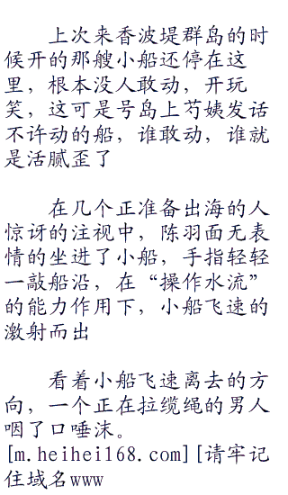 告别芍姨后,陈羽在香波堤群岛漫无目的的晃悠了一阵,一直到三天后,米霍克才到了香波堤群岛。