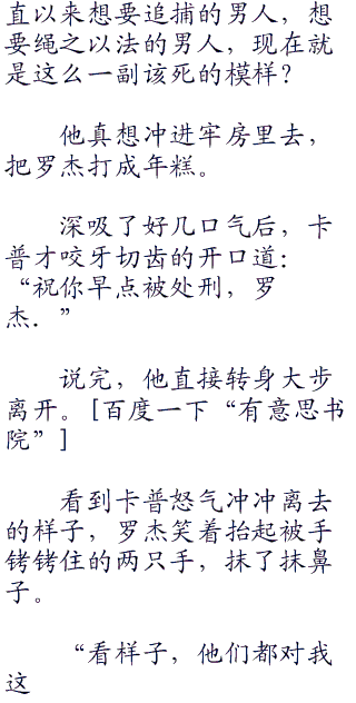 说到这里,他像是突然想起了什么似的,开口道:“对了,卡普,你们是怎么给世界上的人们报道的?嗯,算了,你不用说我也知道,你们肯定说你们把我给抓捕了,而不是说我自首了,对不对?”