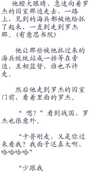 “不会的,放心吧,卡普,我的船员们不傻,不会做出这种事,我都是个快进棺材的人了,救出去又有什么用。”