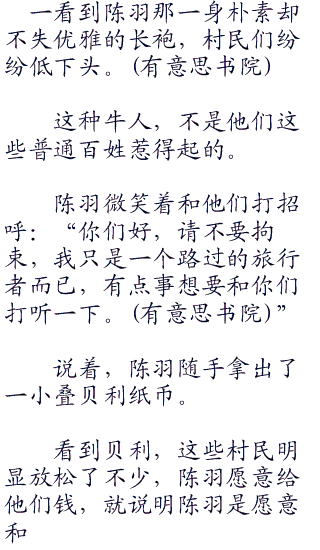 虽然村子人口不多,但在感知域的帮助下,陈羽还是很快就遇到了几个村民。