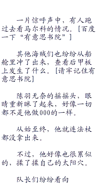 陈羽的这话说得太重了,想让马尔科失去进步的动力,就要完全碾压他,战胜他,这一点,就算是大海贼,也很难做到,因为马尔科是不死鸟,打不死的存在!