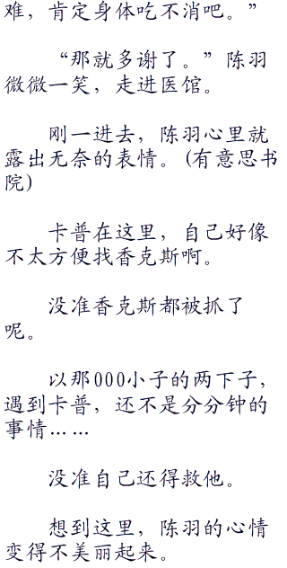 一边想着这些有的没的,陈羽一边在村民们的搀扶下向医馆走去。