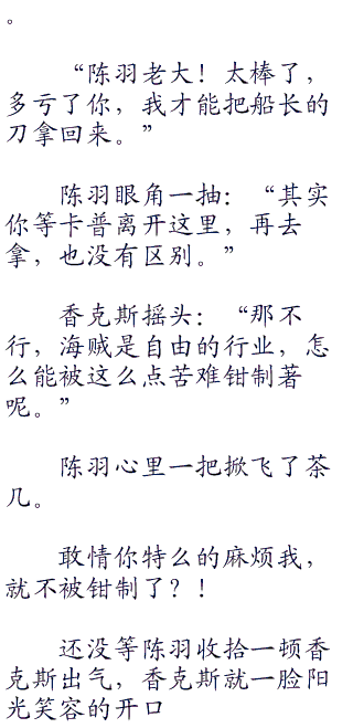 卡普:“……”他总觉得和陈羽交流起来挺心塞的,这人从来就不按套路出牌,你说东,他就说西,如果陈羽不愿意搭腔,那两人之间的话题永远无法产生交汇点。