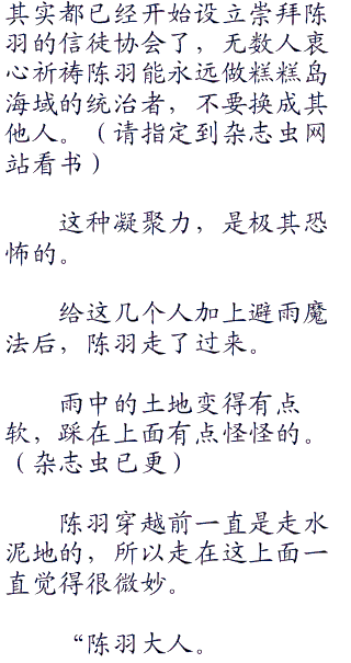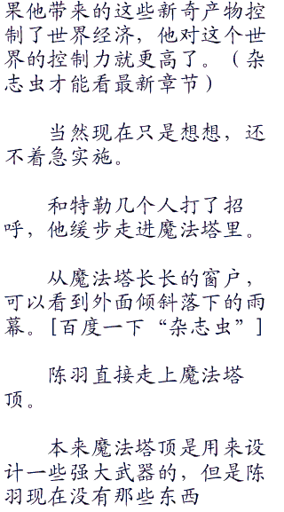 在雨水中,陈羽慢慢向魔法塔那边走去。