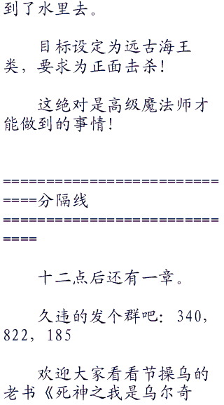 11在七水之都,他战胜了世界zf统帅钢骨空的事情被报道出来了,值得庆幸的是,这个世界的新闻不在互联网上,不会有上万条回复评论,总算是让人省点心,只要不去自找麻烦听人议论,就不会太反感。