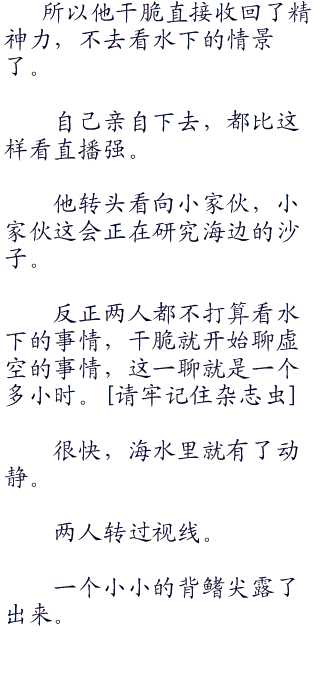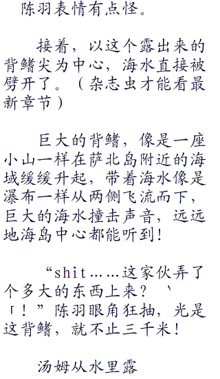 汤姆作为一个鱼人,自然不怕深海,直接跟着跳了下去,只有小家伙无法看到下面发生了什么,顿时感觉不愉快。