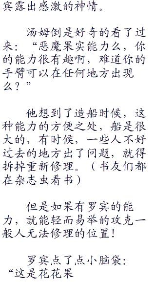 难得遇到一个愿意和她好好说说话的人,虽然是可怕的大海贼大人,罗宾也不希望他因为这件事而疏远自己。