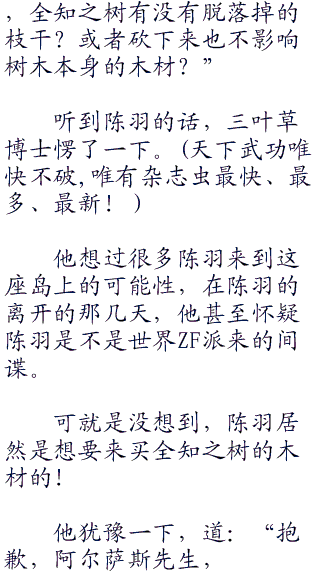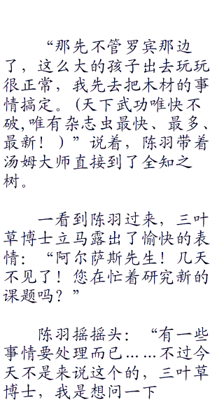 就这样,很快,陈羽重新回到了奥哈拉,准备去完成之前的承诺,把全知之树的木材买来给汤姆大师。