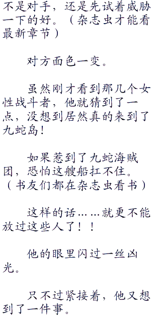 “我们是九蛇岛的人,你要动我们,先考虑一下九蛇岛的怒火!”她知道自己就算战斗也
