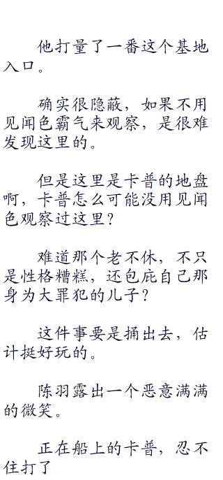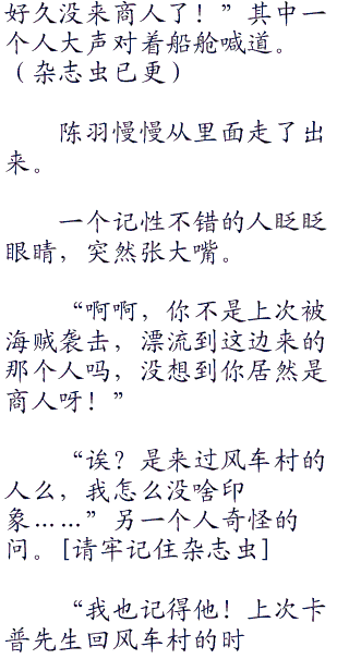 陈羽离开双子岬后,找地方换了一艘船,他换了一艘大些的船,拉货船。