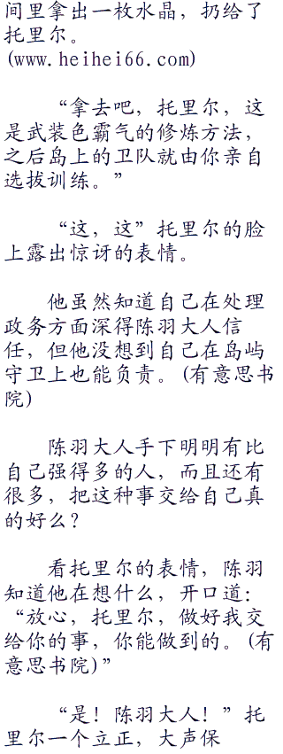 罗宾点点头,她也认可陈羽的说法,不过她是果实能力者,还是比较依赖体术的花花果实能力者,早晚也要学习武装色霸气。