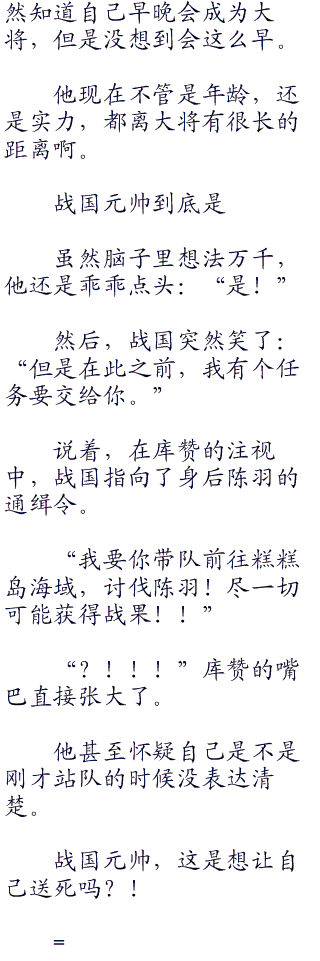 卡普的表情也稍微严肃了起来,他没想到战国这么快就要求库赞站队,看样子是有什么大事发生了。