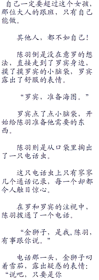 “”罗看了他一眼,然后乖乖地走到桌子前,给陈羽倒了杯茶。