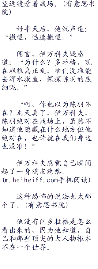 墩克尤咽了口唾沫,拿出望远镜看了过去,希望能看到一点什么。