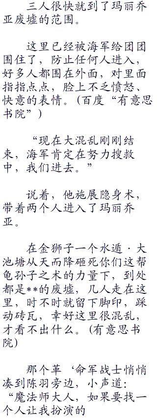 陈羽恨铁不成钢的看了“零零零”他一眼:“当然有用了,难道你忘了现在玛丽乔亚是什么样子吗?现在的玛丽乔亚可是混乱一片,只要你用心点,潜入过去也不是什么难事啊。”