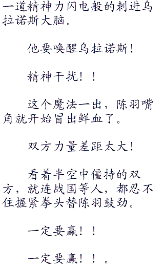 乌拉诺斯虽然**,但自己也不是吃干饭的,速战速决的话,胜负还未可知!