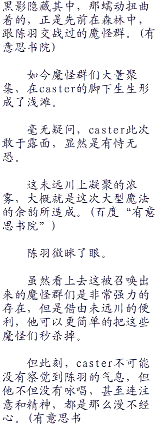 但不用仔细留意,caster脚下那翻涌的水流中蕴含的魔法气息,激荡着一股股的水流,在水面下一片片的