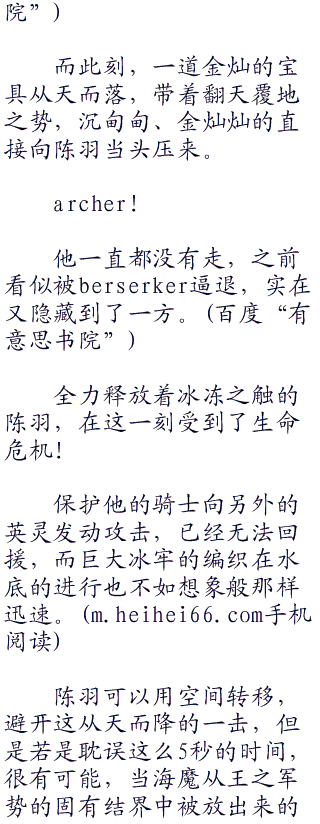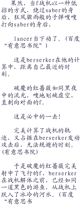 很显然,berserker当下就追在她的身后,如果毫无顾忌的使用宝具,她完全可以用宝具攻击把对方击落下来。
