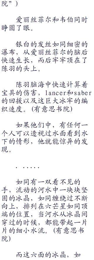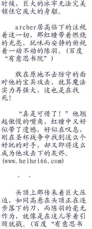 而后,当rider的固有结界控制不住的海魔之时,释放出来的海魔就被完全的关在这个冰牢之中。
