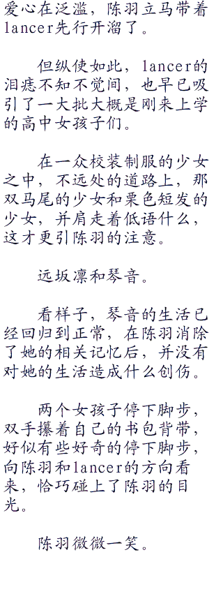 lancer环肩靠在门上,警惕的四下看着,但不管怎么感知,那不知道发生了什么好事而笑得嘴巴都要咧到耳边的master,却比什么动静都要招他的注意。