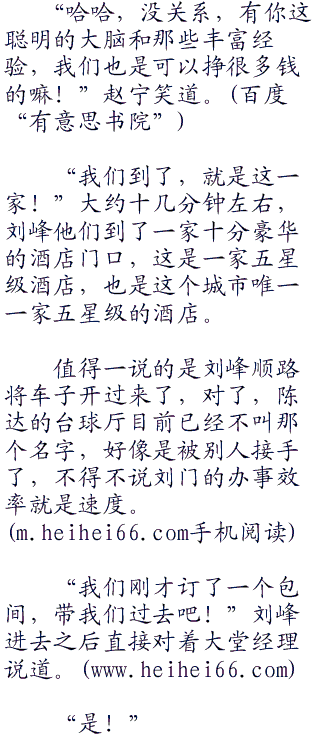“呵呵,应该没有,首先我们没有专业的人才,比如说我以前的那个团队里面有最顶尖的黑客,就连瑞士银行他都入侵过,虽然最后还是被驱逐出来的,但是至少也给瑞士银行损失了几亿欧元,当然了,这几亿欧元都被捐到了一些贫困的地方,团队中也有身手最好的神偷,我们每一次办事的时候都是他去探路…,而我们这个团队显然做不到那个,比如说冬冬,你虽然偷术还行,但是终究上不了大台面,遇见那些真正的大场面肯定会紧张比如说有恐怖分子抢劫啊,你敢过去将那些恐怖分子的子弹全部偷走么?”刘峰笑道。