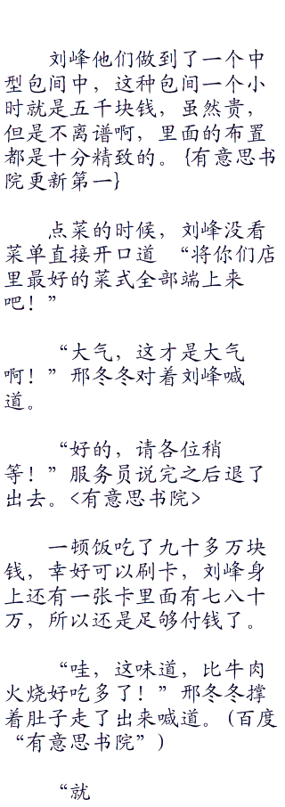 “我看时间也差不多了,不如我们现在去吃饭吧,说实话,六七十万的一顿饭我也是第一次吃到啊!”赵宁笑着说道,赵宁没有抽雪茄而是抽起了香烟,估计是觉得雪茄不适合女性抽吧。
