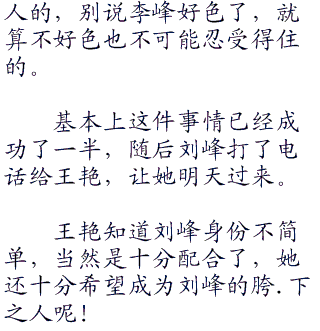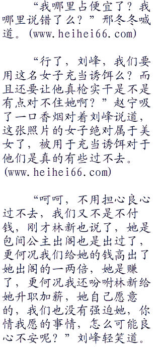 “刘少,这名女子叫做王艳,是我们娱乐场所的一名包间公主,出阁不超过十次,她本身长得不错,加上我们请了最好的化妆师给她化妆,应该满足您的要求吧?本来我们可以找到素颜也是不下于这名女子打扮后的女子的,但是刘少说只是中等的,所以就没敢擅作主张,这是她的联系方式,刘少如有需要可以联系她!****6!”林新的声音从里面传了出来。