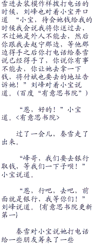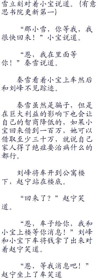 “额,那好吧,到时候我借到钱我会给你十万块钱的!”小宝说道。