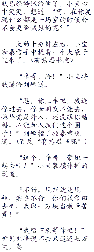 “峰哥,不是五万块说好了么?”小宝说道,他的确不知道刘峰居然加了三万块,不过还是要配合一下,这是好事啊。