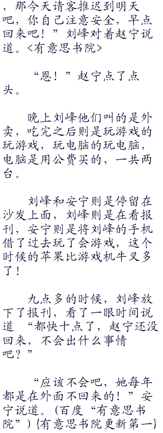 赵宁回来的时候打了一个电话给刘峰,刘峰接听之后立刻让小宝打了一个电话给秦雪,让他去付斌去的那个地址。h ei6 6 co m