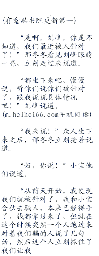 接下来的几天刘峰他们都没有什么活动,做的都是散活,虽然钱也蛮多的了,但是他们可是骗子唉,总不能休息吧?手艺不能落下。