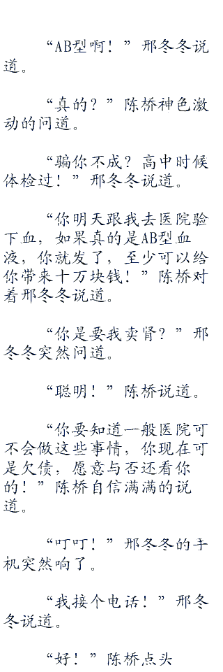 “恩,你立刻去找ab型的肾源吧!”梁继勤随后挂断了电话!