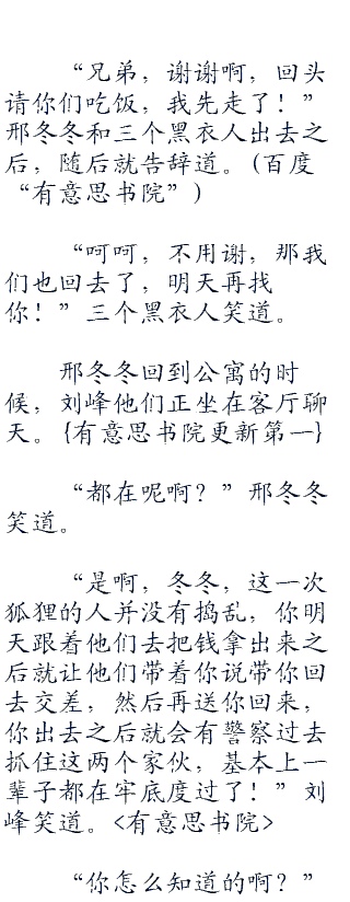 “好,如果你敢骗我们,保证你们吃不了兜子走!”黑衣人对着梁继勤冷笑道,随后带着邢冬冬离开了。