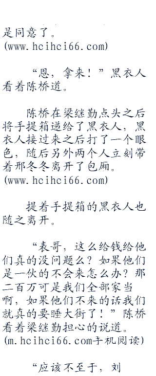 “恩,拿来吧,拿来之后我们带这小子回去过户,然后把它送回来,你们在这里等我们!”黑衣人对着陈桥伸出手道。