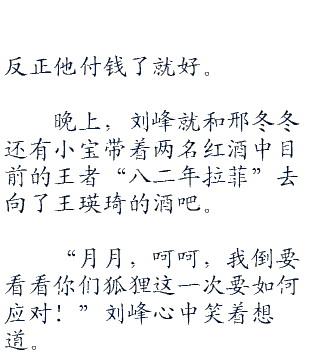 刘峰为什么选择她,是因为她会带着毛骗中另外一个美女月月出场,毛骗中的美女一共也就那么几个,刘峰最喜欢的两个就是赵宁和安宁其次就是天天和月月了,这四人都属于绝色一类。