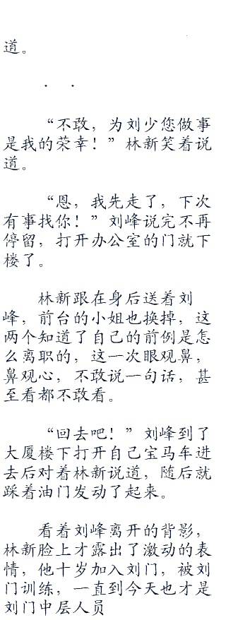 刘峰随后回去房间换了一身衣服,出去坐上了车,打了一个电话给林新。