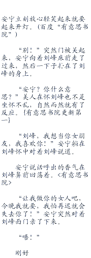 “刘峰,是我,我是安宁!”黑夜中传来一个微笑的声音。