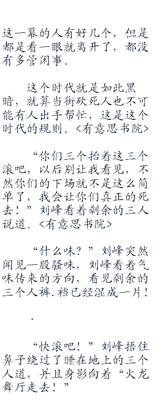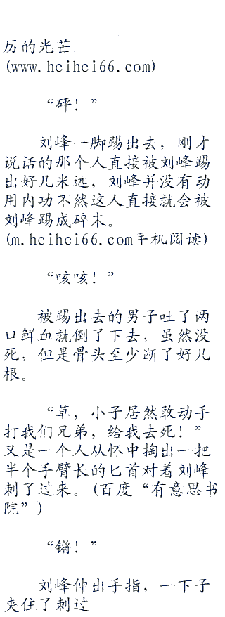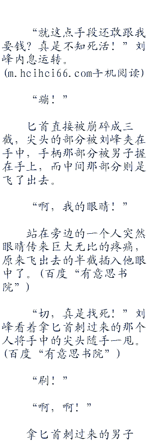 “小子?一个人啊?跟谁混的?有钱没?哥几个缺点钱,像你借点钱花花!”其中一个人对着刘峰大笑着说道。