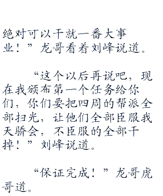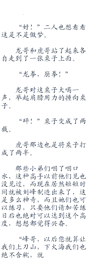 “峰哥放心,我们一定听她的话!”龙哥虎哥带着小弟们对着刘峰喊道。