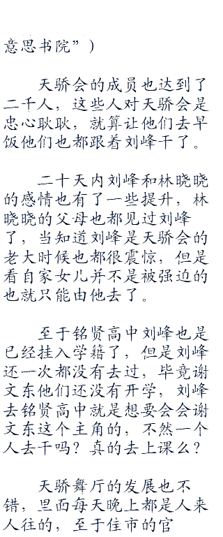 大致的了解一下校园的各地方布置,刘峰也在逛校园的时候用造人挂和金钱挂制造出一个人还有一百万现金出来。