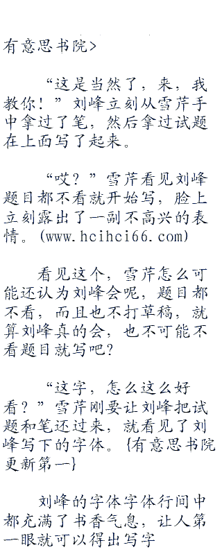 既然决定了,刘峰就要去做,刘峰瞟了一眼雪芹的试题,发现已经密密麻麻了,雪芹的字写的十分好看,虽然不能说是顶尖,但是字体行间都充满了清秀味道,在这高中时代这字体绝对是无比厉害的了,甚至一般的老师都比不上的。