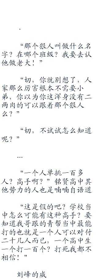 “终于给我等到了机会,哼哼,学霸,我就喜欢和学霸比知识!”刘峰心中笑着想道。