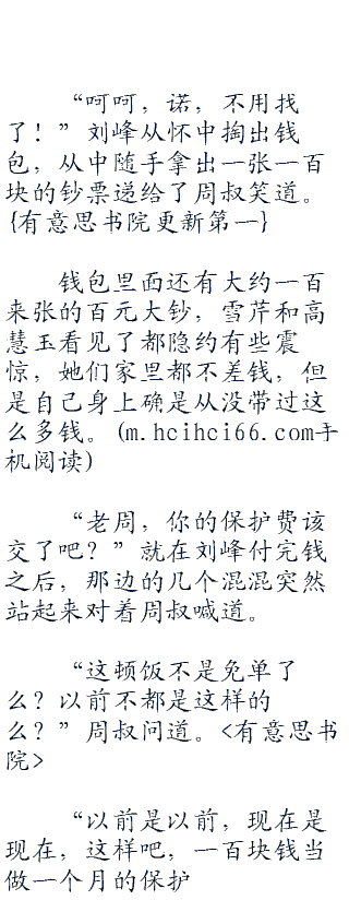 “不认识,不过我上一次来他们就在周叔店里吃饭,而且还问周叔要保护费,吃饭也不给钱,已经好几次了!”雪芹愤