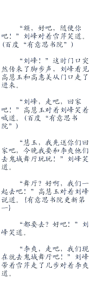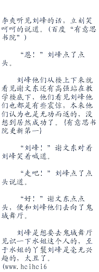 下午的时间很无聊,刘峰依旧是在睡觉中度过的,不过放学的时候李爽突然过来对着刘峰笑道 “峰哥,我们打算去鬼域舞厅玩,你要一起去么?”