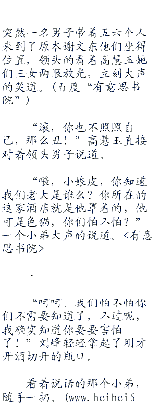 刘峰旁边的高慧玉和高惠美,雪芹也是端起了杯子对着刘峰笑道 “刘峰,我们也陪你喝一杯吧,嘻嘻,三个大美女陪你喝酒你是不是很开心啊?”