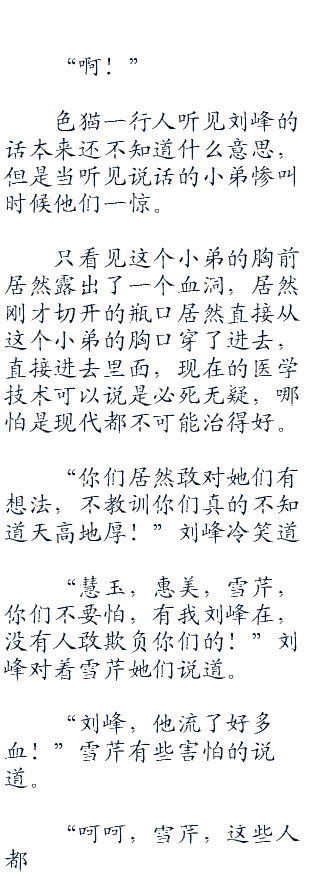 刘峰他们刚刚坐下,就有一个服务员笑着走了过来对着刘峰他们问道 “请问几位需要什么?”
