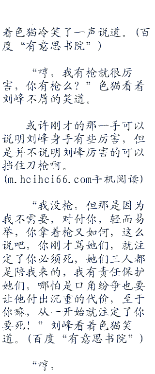 “麻痹的?小子!”色猫站起来看着刘峰怒道,从怀中掏出了一把手枪对准了刘峰。