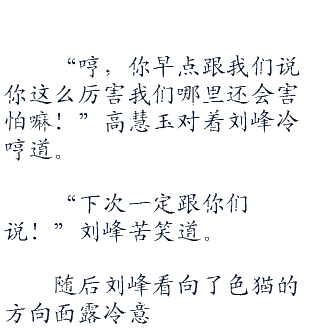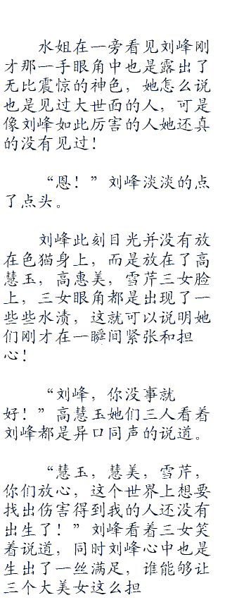 不过想法是好的,但是真的看见还是觉得有些害怕,当然了,她也不会讨厌刘峰,毕竟刘峰是对她好。